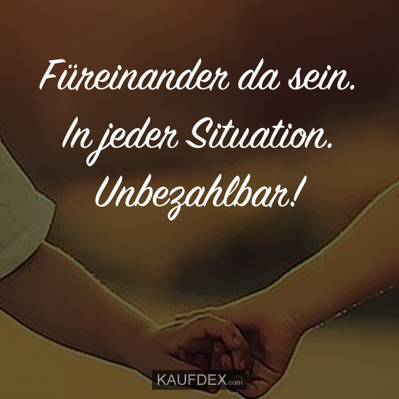 Füreinander da sein. In jeder Situation. Unbezahlbar!KaufdexLeben - Zitate, Liebe - Zitate, Sprüche Füreinander da sein. In jeder Situation. Unbezahlbar! An wen denkst du dabei? Jetzt teilen!teilen teilen teilen merken teilen