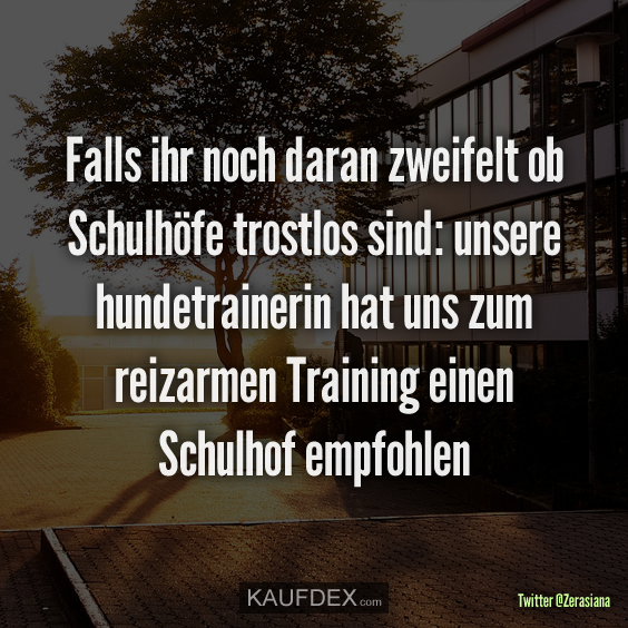 Falls ihr noch daran zweifelt ob Schulhöfe trostlos sind: unsere hundetrainerin hat uns zum reizarmen Training einen Schulhof empfohlen