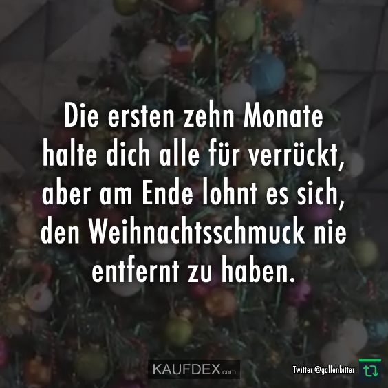 Die ersten zehn Monate halten dich alle für verrückt, aber am Ende lohnt es sich, den Weihnachtsschmuck nie entfernt zu haben.