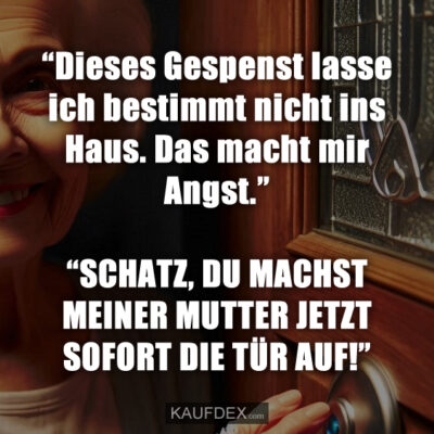 “Dieses Gespenst lasse ich bestimmt nicht ins Haus. Das macht mir Angst.” “SCHATZ, DU MACHST MEINER MUTTER JETZT SOFORT DIE TÜR AUF!”