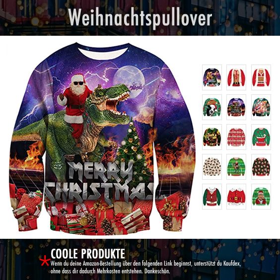 Kreativer Weihnachtspullover Weihnachtsmann 3D. Jetzt auf Amazon ansehen *Wenn du deine Amazon-Bestellung über den folgenden Link beginnst, unterstützt du Kaufdex, ohne dass dir dadurch Mehrkosten entstehen. Dankeschön