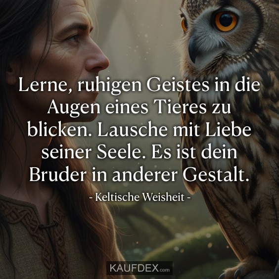 Lerne, ruhigen Geistes in die Augen eines Tieres zu blicken. Lausche mit Liebe seiner Seele. Es ist dein Bruder in anderer Gestalt. – Keltische Weisheit –